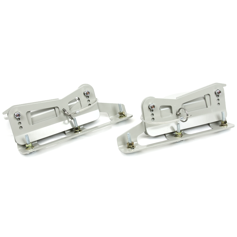 The PCI quick release splitter brackets are a simple bolt-on solution for mounting splitters. There are no tools required for disconnecting the splitter. Once the lower brackets are hooked in place to the upper main mounts, a stainless steel pin will lock the lower bracket to upper main mounts. Both upper and lower parts are powder coated steel.