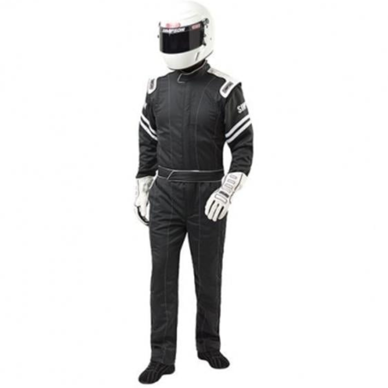 The Legend II Racing Suit is an affordable SFI 1 rated firesuit tailored to the needs of the racer. We have added a new distinctive styling and 3-point epaulets. This entry-level fire-retardant cotton suit includes a wraparound around collar and 3-point epaulets with Simpson branding. It also includes vertical quilting, 360 degree full arm gussets, straight leg cuffs and front pockets. Available with arm restraints. We sell a 2-piece version of this suite