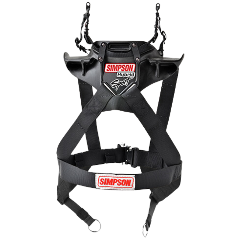 The Hybrid Sport is a great head restraint device for those racing on a budget. The Hybrid Sport with its lightweight design and DuPont carbon/polymer construction provides maximum comfort and maneuverability with superior strength. Hybrids come race ready. The trusted low profile design disappears into the seat when worn and allows for easy in and out of the race car, eliminating the danger of becoming caught in other gear. The protection stays with the racer during multiple impact, flips and rolls.