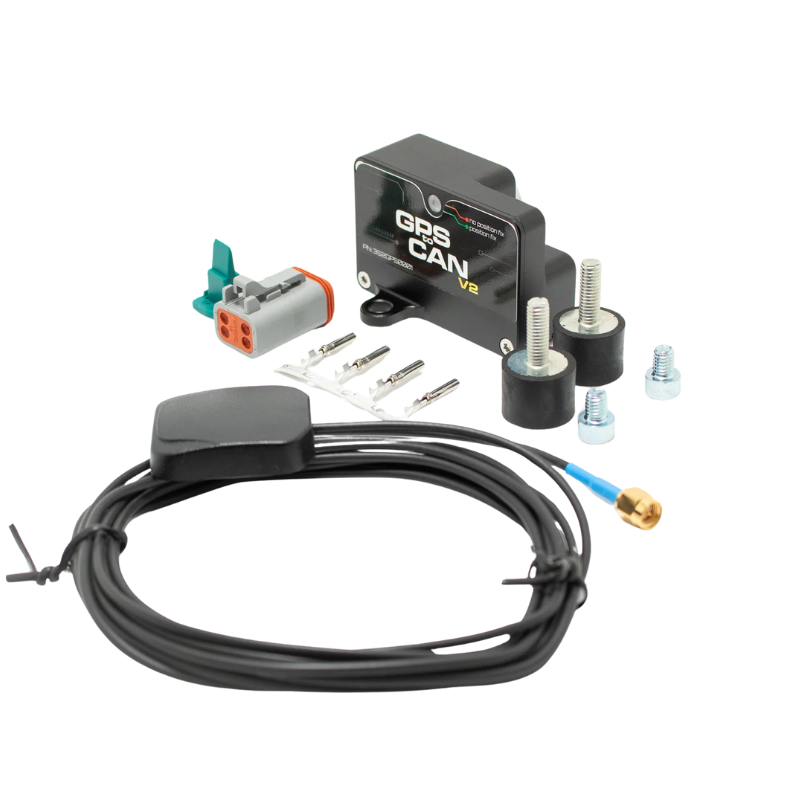ECUMaster GPS to CAN V2 module assures high-accuracy position tracking with a 25 Hz update rate. The module can use four navigation systems at the same time: GPS, GLONASS, Galileo, and BeiDou. An external, active antenna with a magnetic base is included with the module. Thanks to a built-in 3-axis accelerometer and gyroscope, the device can deliver information about speed, position, heading, altitude, accelerations, and angular velocities. All GPS data is transmitted via CAN bus. The GPS module is intended to work with the ADU display/logger and allows real-time lap timing, predictive timing, as well as data analysis after the session with a track map visualization.