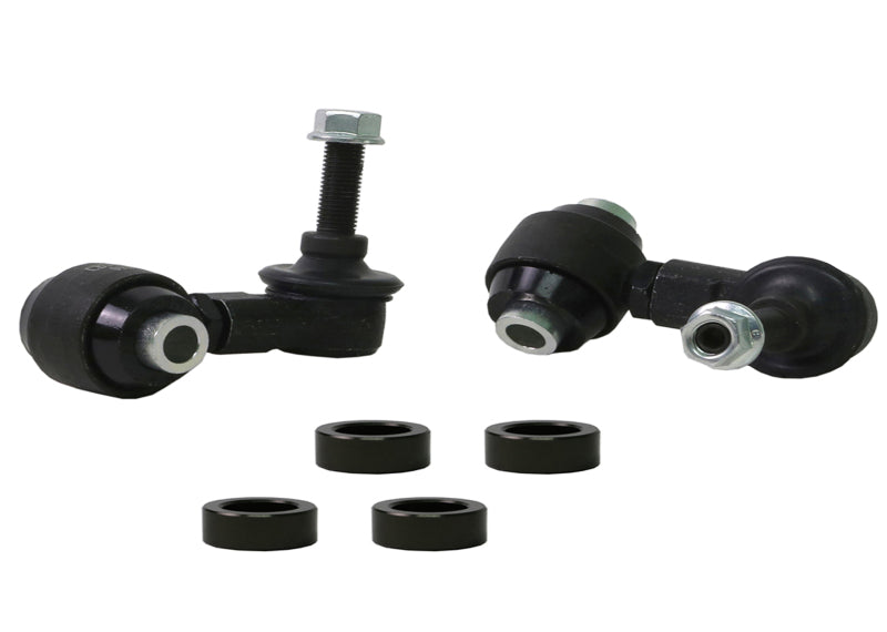 Not many enthusiasts are aware that OE and more importantly aftermarket sway bar effectiveness can be hindered by worn or inadequate mounts, drop links and lateral stoppers. Whiteline adjustable sway bar links are engineered to be up to the task with top spec, light weight componentry combined with a window of adjustability, eliminating sway bar preload on installation but most importantly ensuring the m aximum output of the sway bar for improved grip and better handling.
