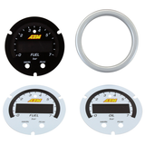 The AEM X-Series Fluid Pressure Gauge has a black bezel and black faceplate included standard, while this optional silver bezel with white faceplate is available for users that wish to change the look of their gauge.