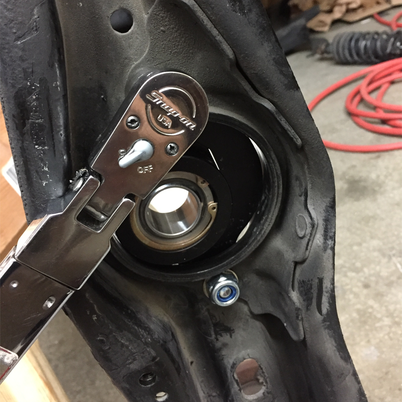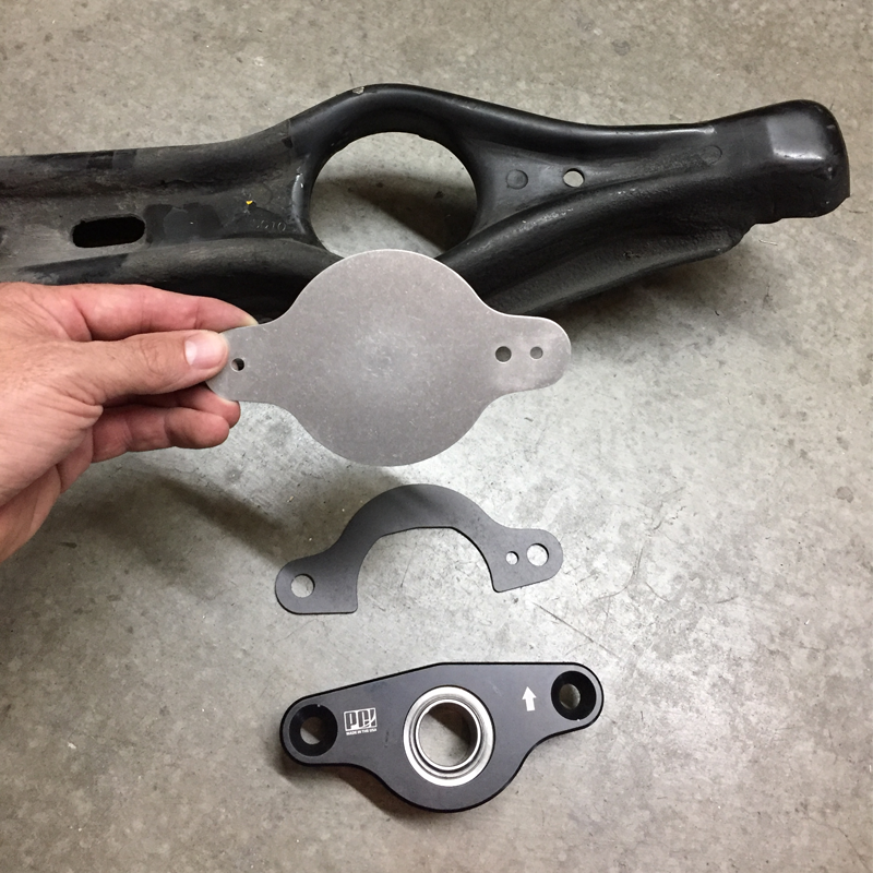 Offset housing corrects toe link angle, improving toe curve on lowered cars