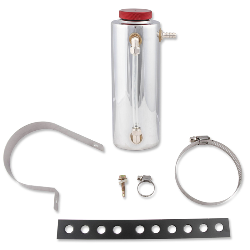 This Mr. Gasket Chrome Aluminum Radiator Fluid Reservoir with a 24-ounce capacity is not just functional; it looks fantastic. Perfect to replace that yellowed-out plastic stock tank, or add a tank to vehicles that never came with one. A coolant recovery tank is required at most race tracks!