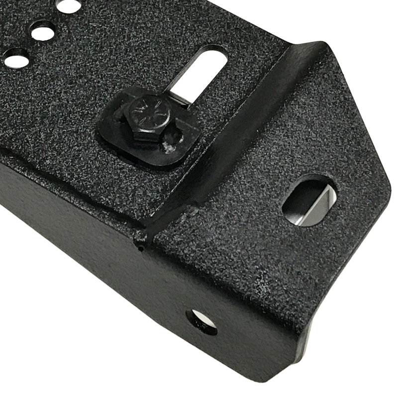 CNC bent one-piece design allows for use of lighter 1/8” steel vs. heavy 3/16”